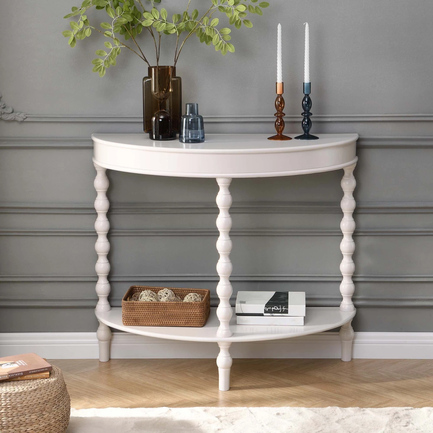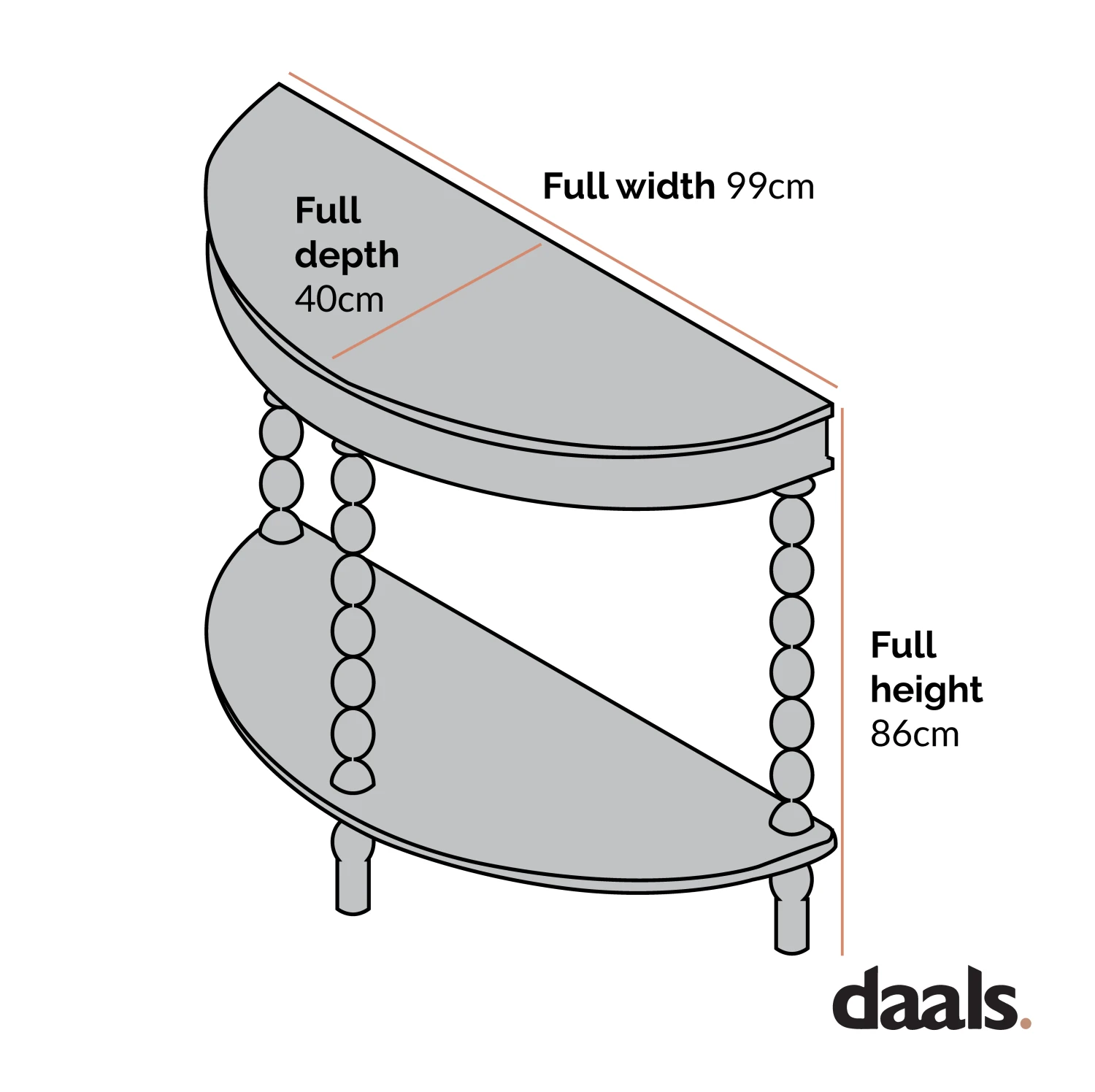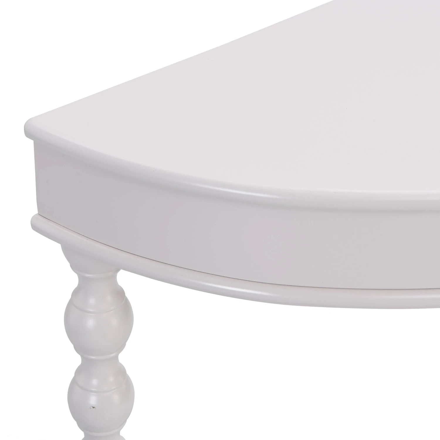 - The demilune shape is a beautiful space saver, perfect for hallway, behind sofa, etc. The table comes with wall fixing to prevent tipping.