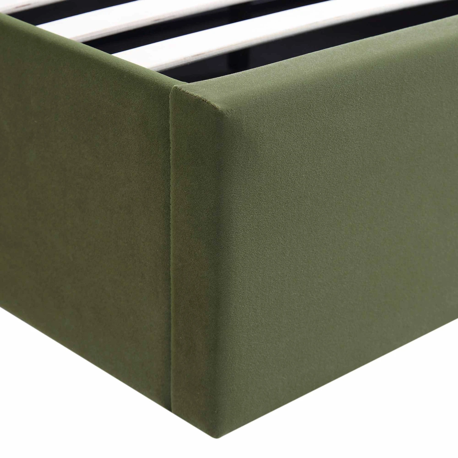 - The bed is upholstered with sumptuous velvet touch fabric in rich moss green colour from headboard to base to make it the statement piece in any bedroom.