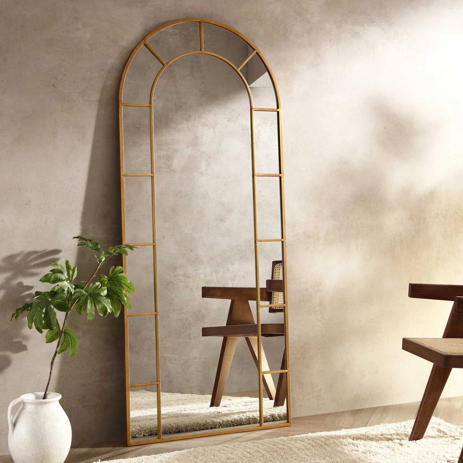 - Featuring a beautiful arch shape and panel design, the Beaumont mirror leans against the wall to create an elegant ambience as well as reflecting lights to any spaces.
