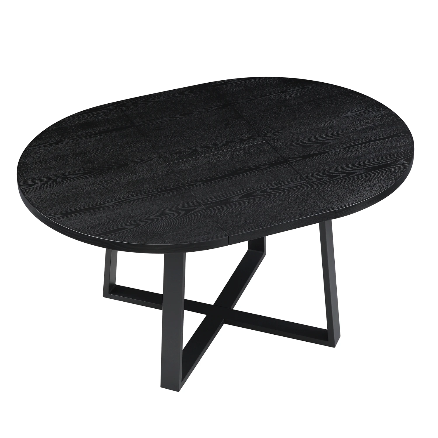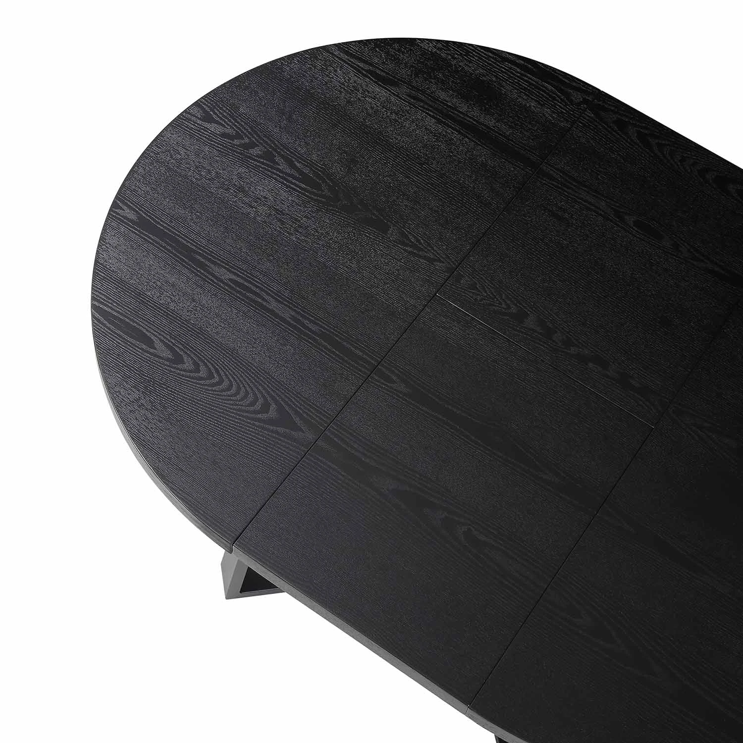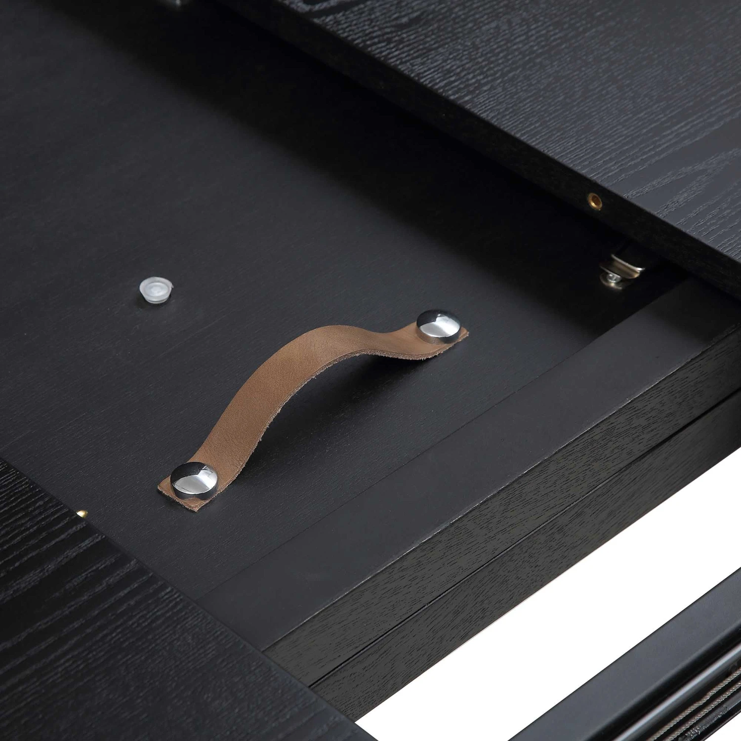 - The table top finishes with solid oak veneer in black stained finish, therefore each piece comes with unique natural pattern of wood grains and knots.