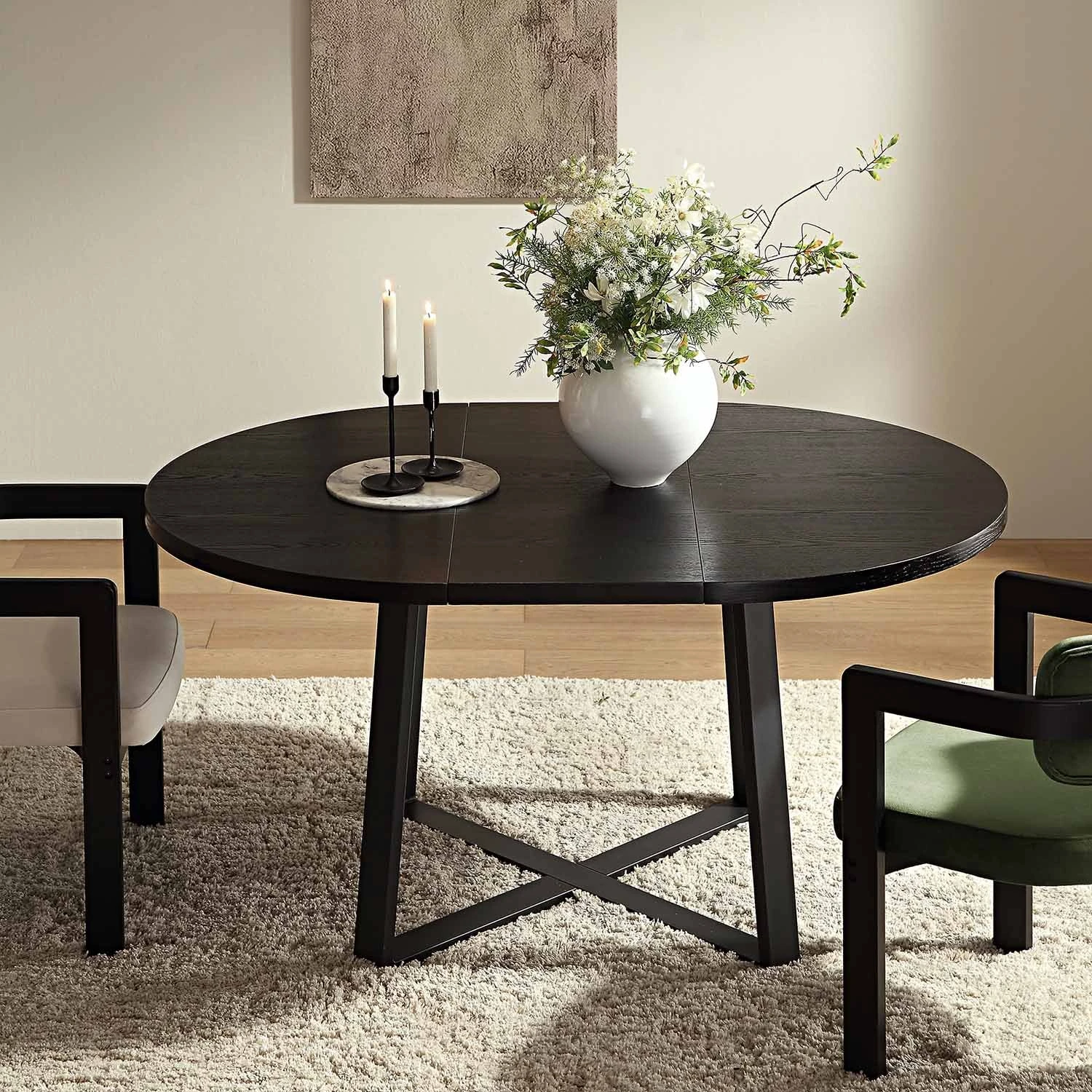 - Complete the look: Pictured with our Bern Extending Round Dining Table is our stylish Stanford Dining Chairs in Moss Green and Champagne Velvet