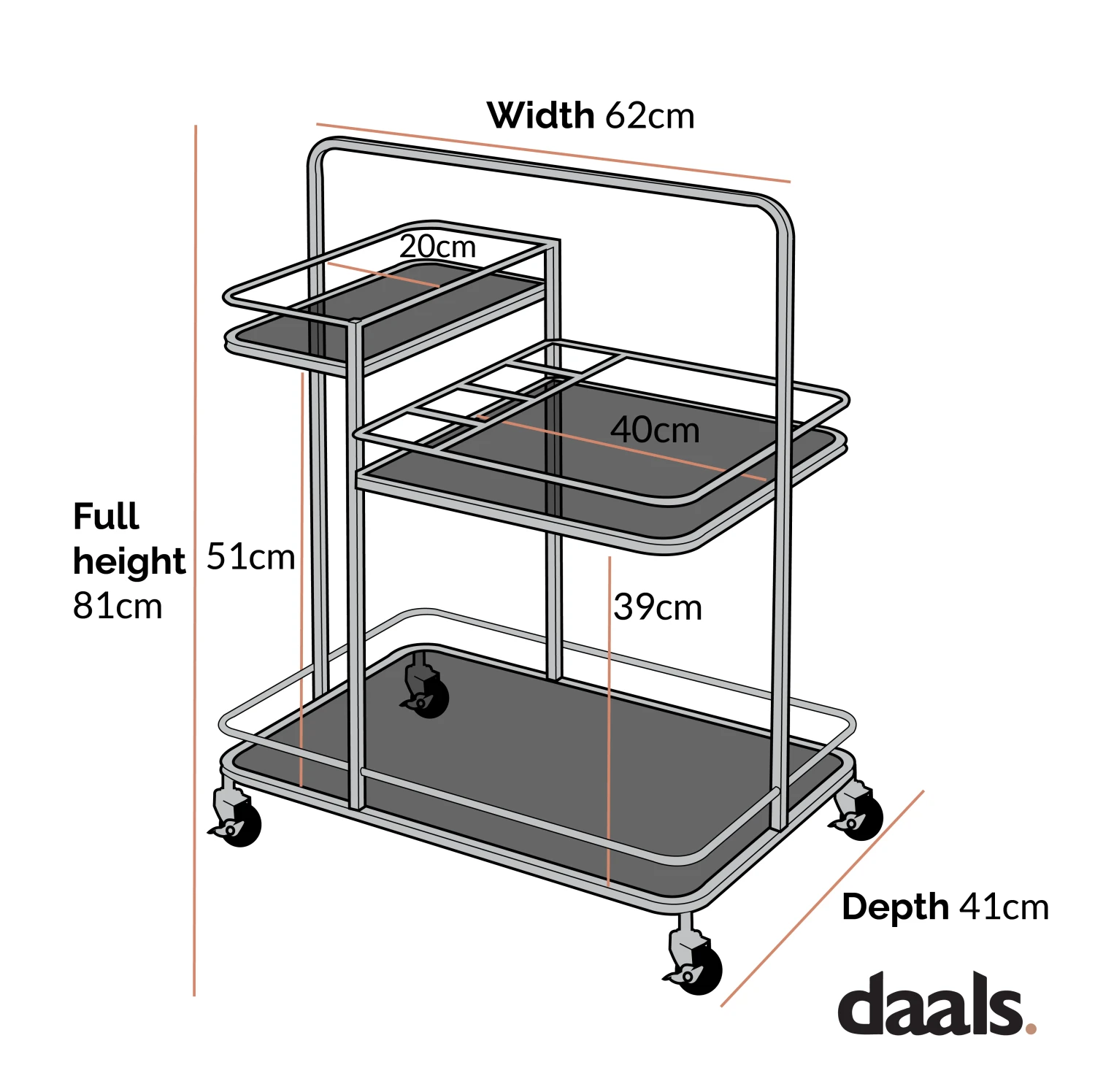 - The Clementine drink trolley is a glamourous accent accessory piece with 3 layers for display and also for practical use.