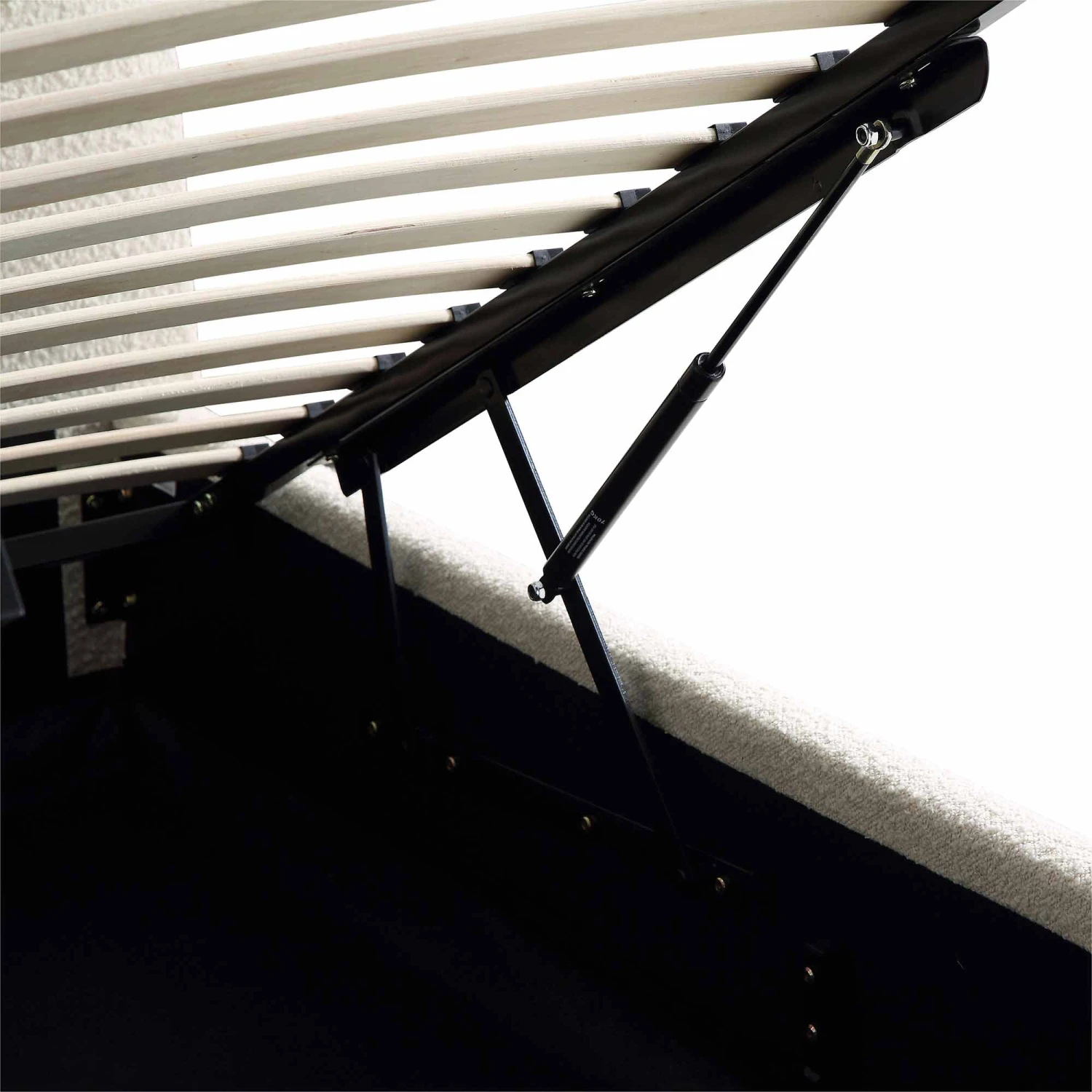 - Complete the look: Pictured with our Egerie Beige Boucle Ottoman Bed is our popular Hampstead Curved Armchair in White Boucle, our new Maru Round Side Table in Oak and our Pollie White Boucle Storage Stool