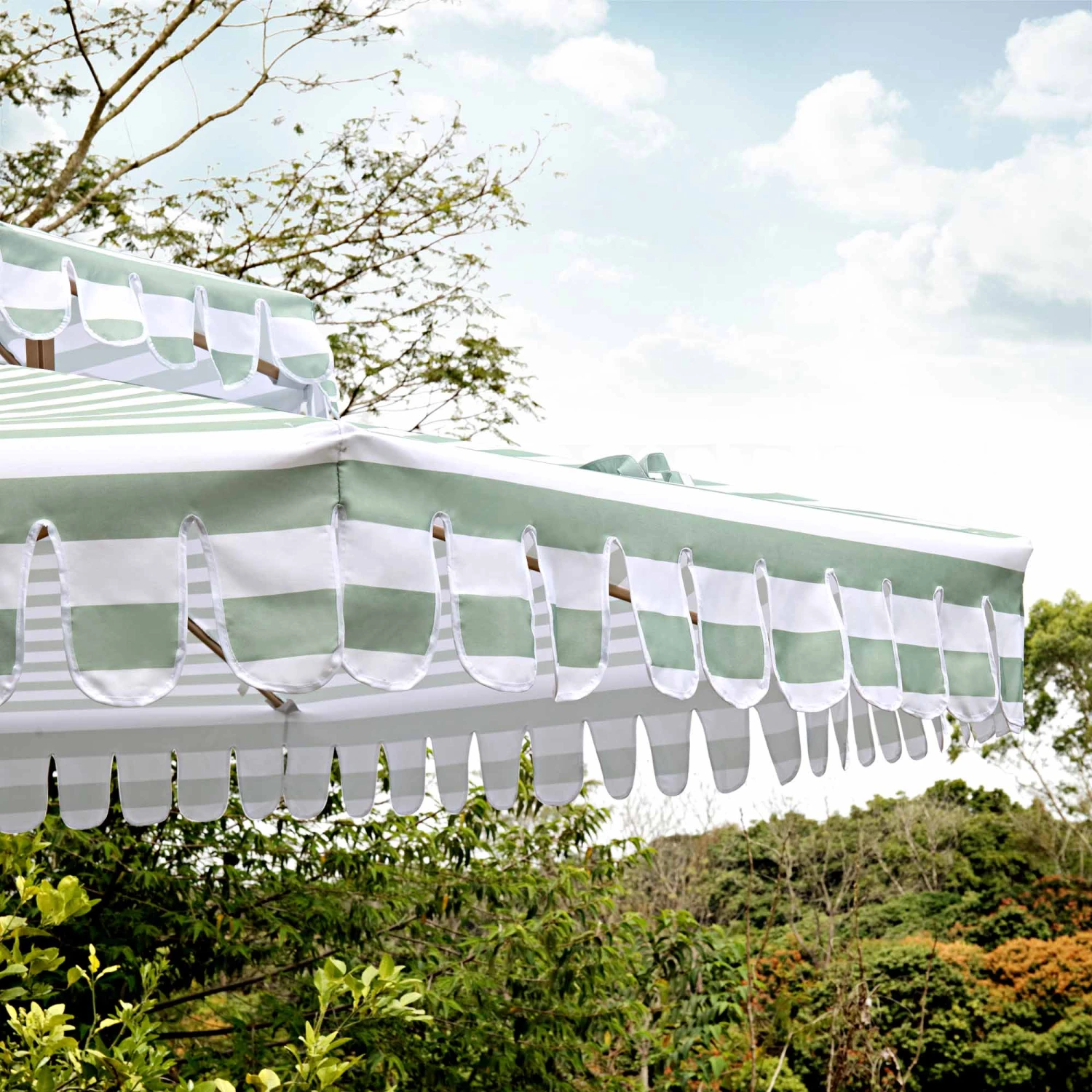 - With an enhanced 3 metre double-top design, our garden parasol has a beautiful sage green and white striped design
