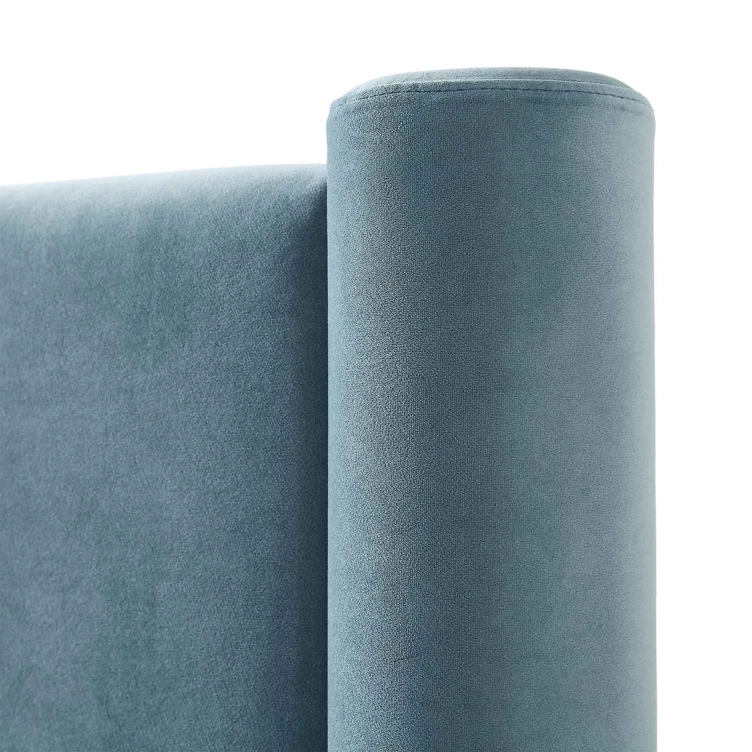 - Upholstered in beautiful misty blue colour velvet fabric.