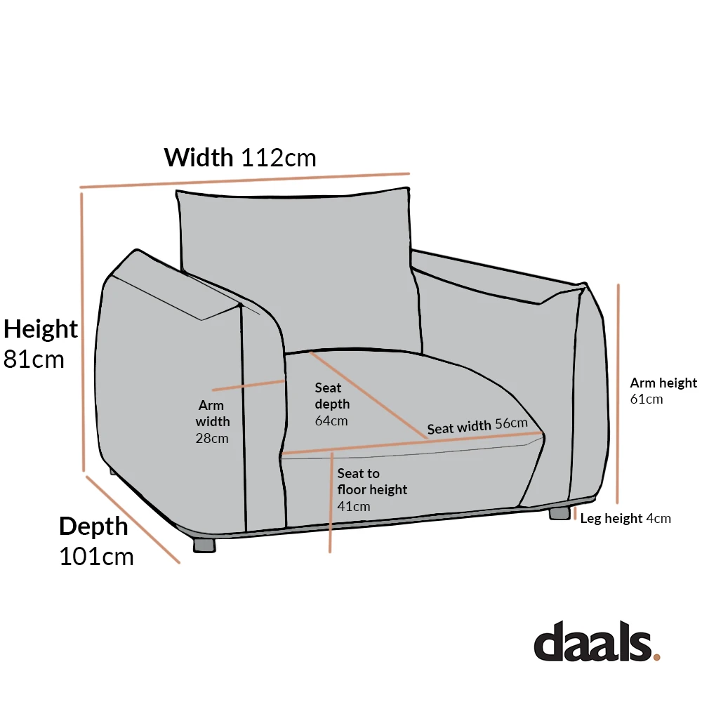 - Accent chair size: W 112 x D 101 x H 81 cm.