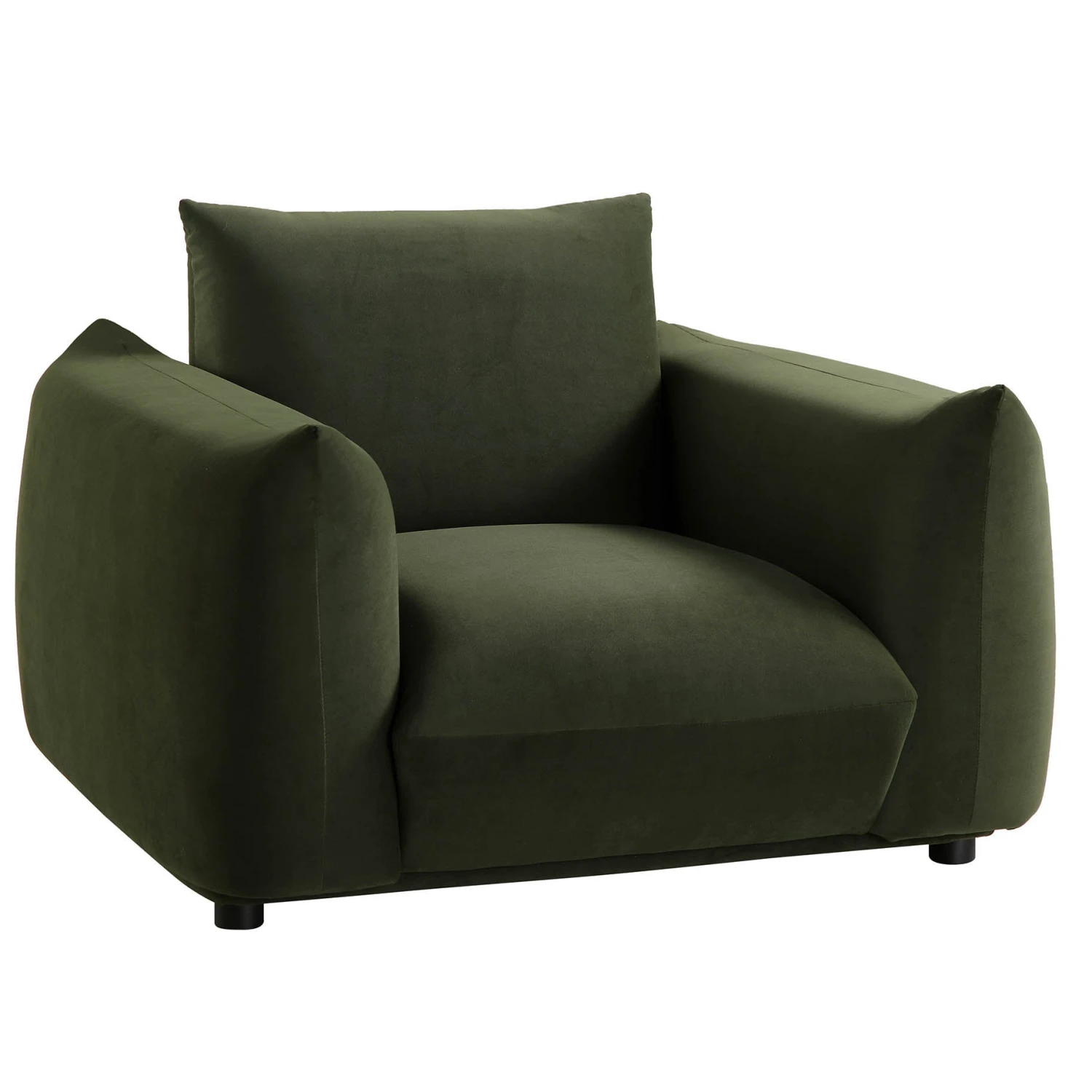 - Upholstered with beautiful earthy tone moss velvet touch fabric.