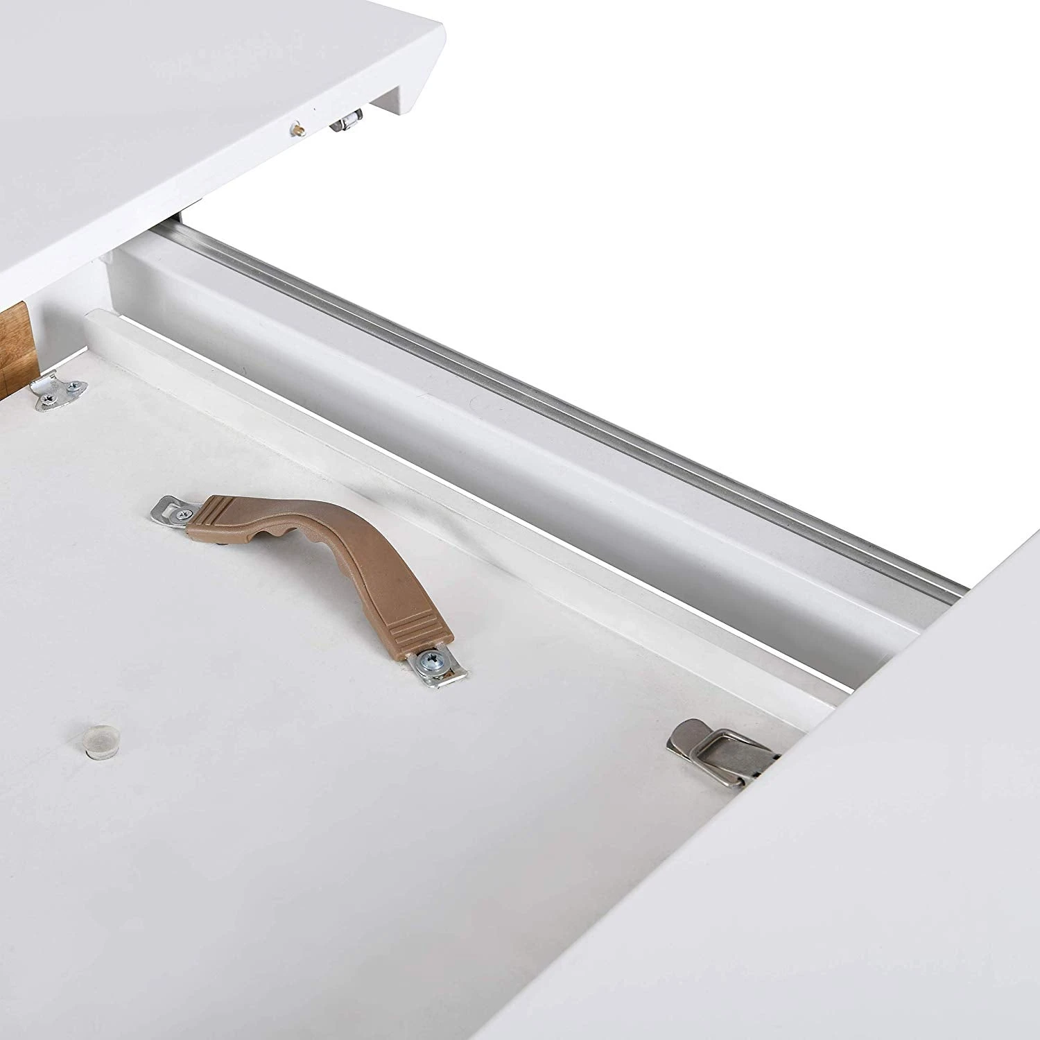- To extend the round table to an oval one, simply pull apart, flip and lift the extension panels into place.