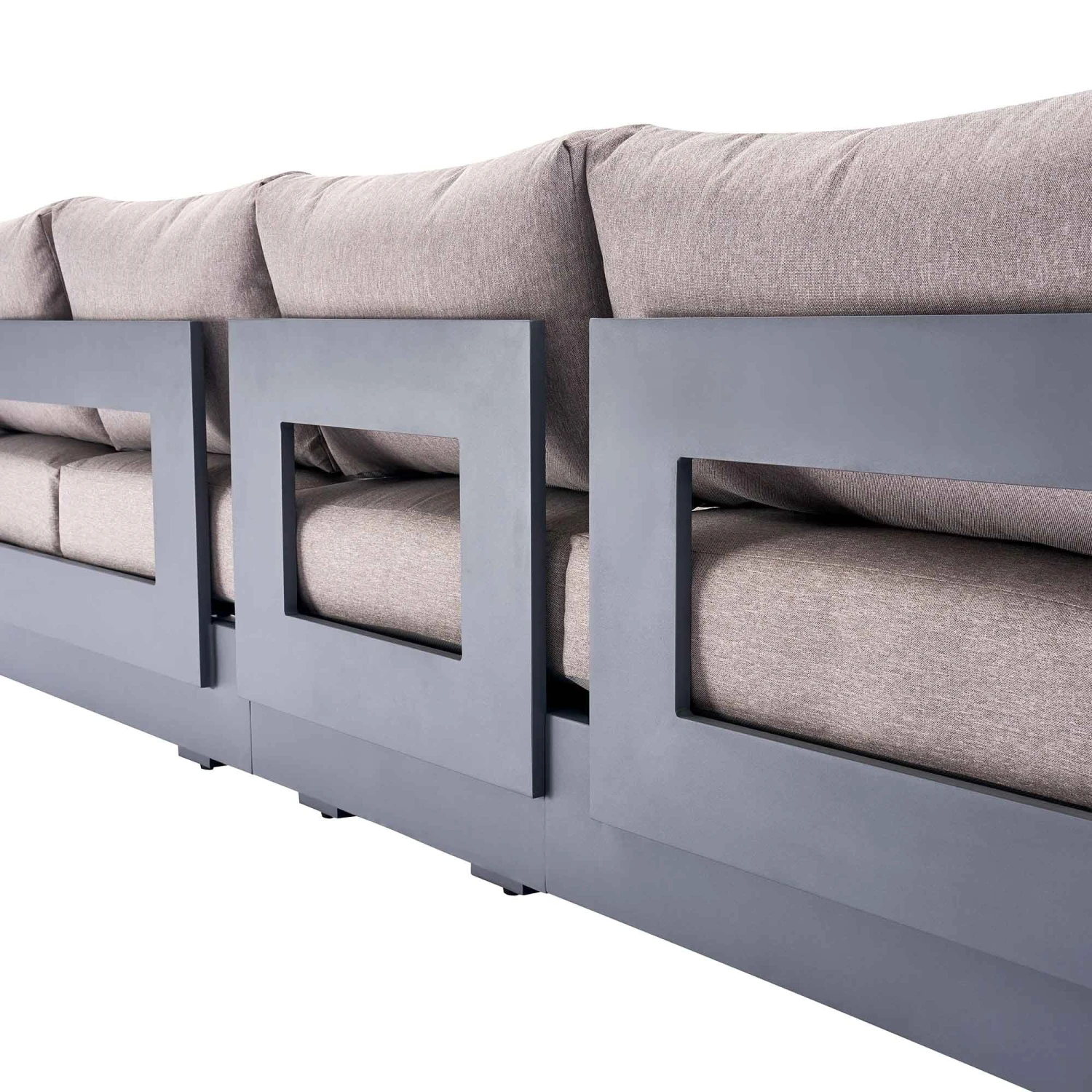 - The aluminium frames are hand welded, featuring a powder-coated finish in granite colour which create a protective, weather-resistant, rustproof, and UV-inhibiting barrier