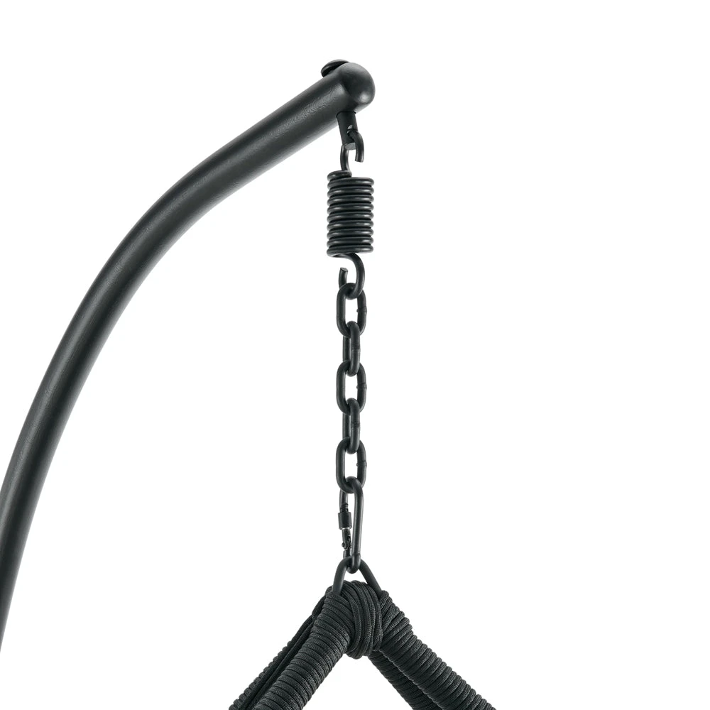 - Our Lydia hanging chair is made with durable faux rattan and rope wrapped around strong steel frame in a moderen geometric shape.