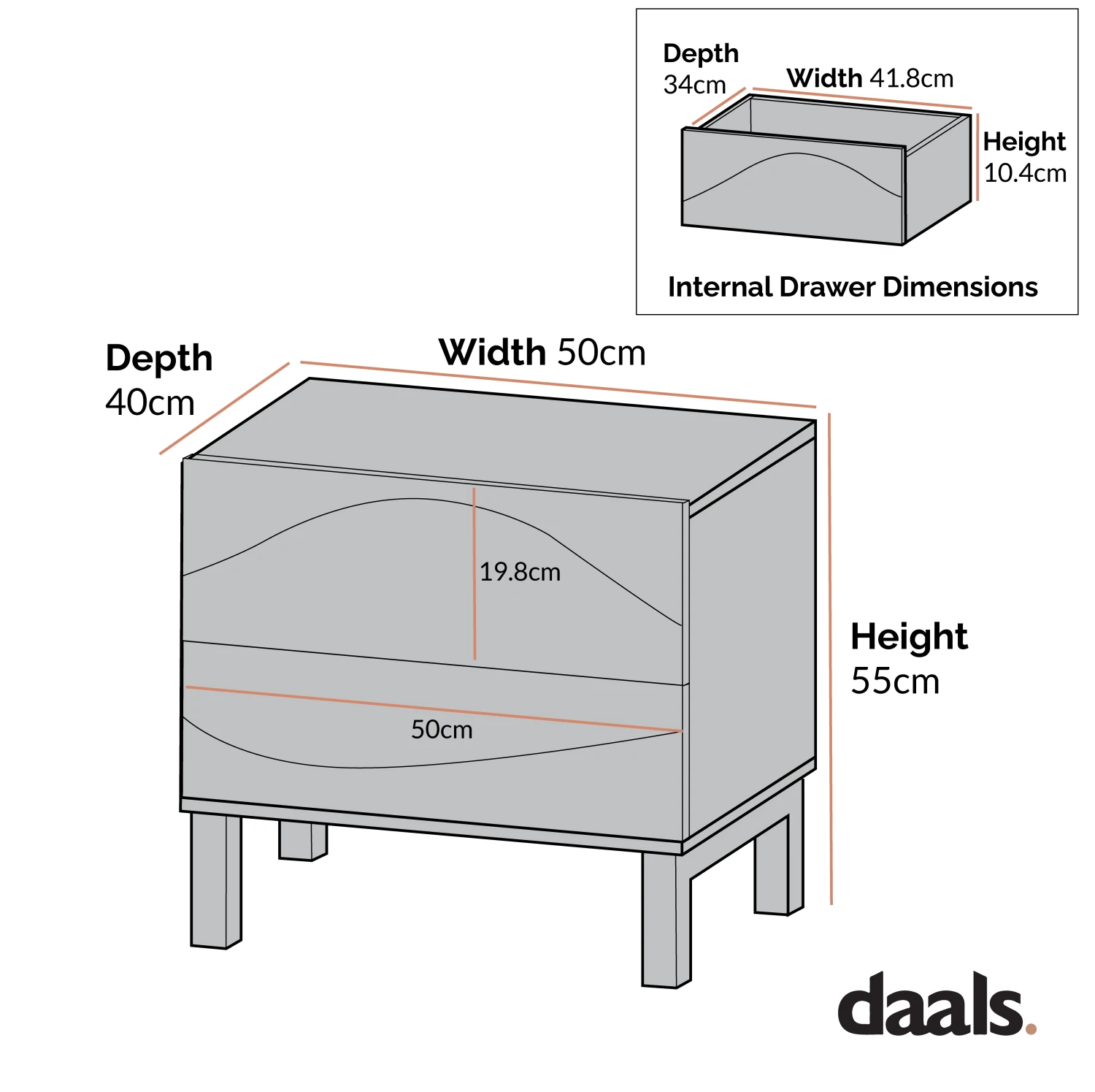 - The bedside table has 2 drawers on metal runners for handy bedside storage.