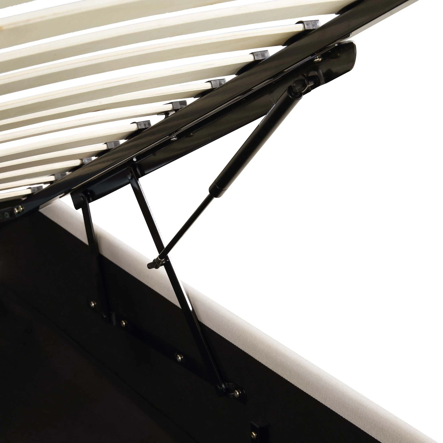 - The bed frame is upholstered with quality fabric. The ottoman can be easily lift up from foot end with gas lift mechanism.
