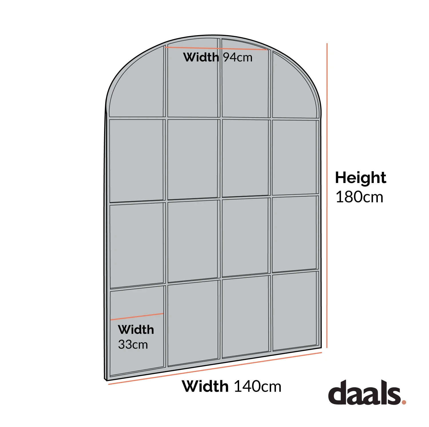 - The Portobello mirror is perfect for contemporary interiors thanks to its full size, arched metal frame and window panel design.