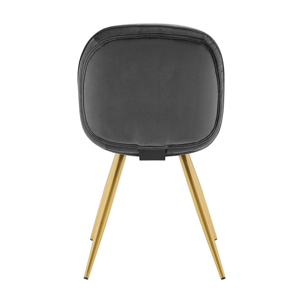 - Crafted with durable metal frame and gold colour powder coated metal legs, the chairs feature diamond pattern stitching on back and seat for a modern glamourous look.