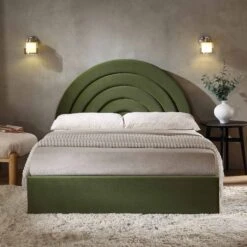 - Upholstered in soft, wool like fabric in pale sage green colour that suits any home decor
